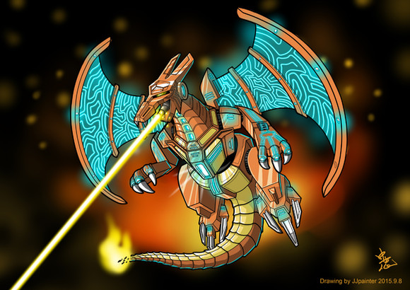 I had this idea two weeks ago but I couldn't find any reference materials at hand until I stumbled onto one by accident (ironically it was for another thing I was trying to draw). I wish I could've made it more mechanical but it might reach the Amplified Digimon/Mashin level of design that it might put people off (overboard with the details). I also wanted to color this with markers but I didn't have anything that matches the colors of it's wings so I went with digital coloring instead (with gratuitous use of the chrome filter)Also is it pronounced MECHArizard or meCHARIZARD?