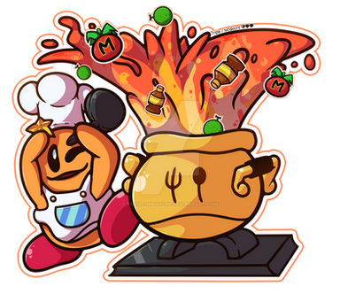 Kirby's face kills me here xD I really love how you did the pose of the Chef, and the way you've drawn the flames! Great colouring and bold line work as well!!