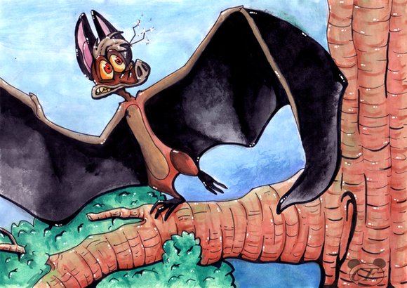 Illustration assignment. We were to re-illustrate an existing children's book cover and do an accompanying two-page spread.This was the spread, and the book I chose was Stellaluna.