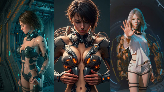 An AI artwork of female cyborgs.