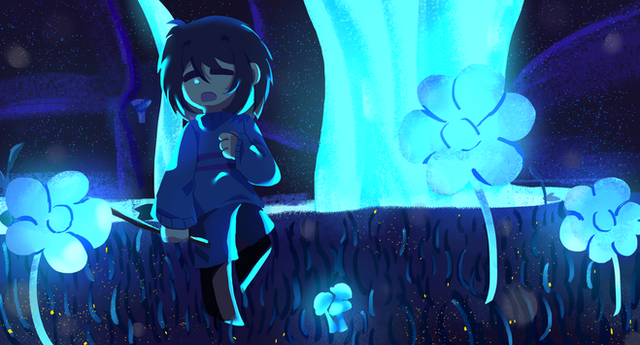 Some more Undertale fan artWaterfall is one of my favourite places in the game; so mysterious and pretty! I imagine if Chara is guiding Frisk through the Underground, they get sad here especially after the music box plays. Poor child.