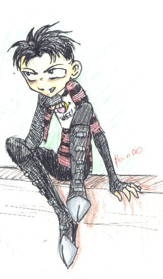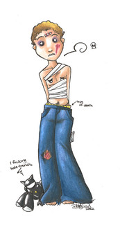 'Suuuuup! Awesome ripped jeans! His hair is kickass XDD And a little too badass for the adorable smile he's got there :3