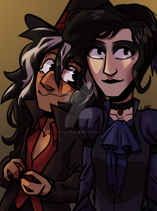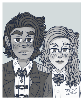 Claw and his best friend Etta Carmine! She is determined to start her own clothes making buisness, and she's awake all night, so Claw gets to visit her all the time.She has a customer who's the same clothes size as Claw, so she often gets him to help out whenever he comes over and isn't covoured in dirt or blood.
