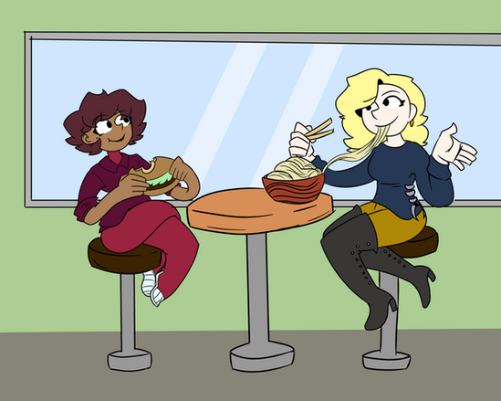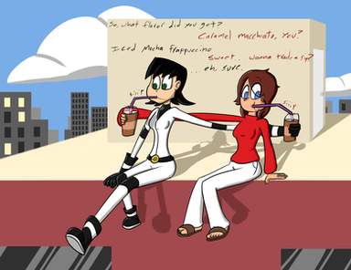 Heres my part for Β an art trade withAfter a little collaboration fighting crime they decided to take a break just to hang out at the mall.