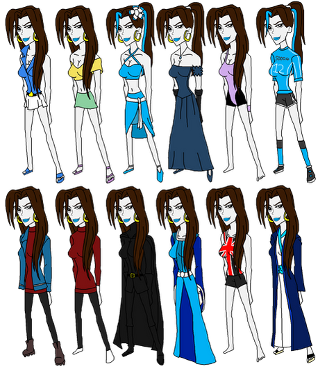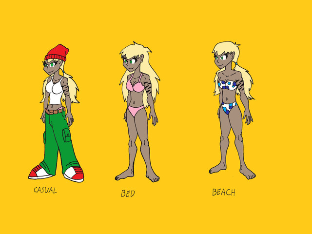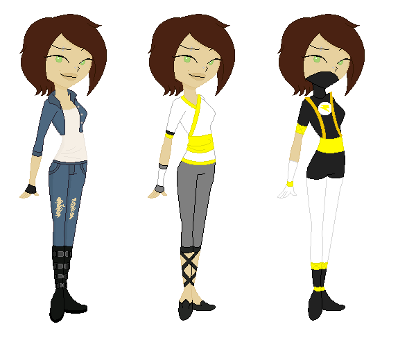 I didnt include the current outfit since im still conflicted with that one, thats why I replaced it with the first outfit I ever drew on her to remember just a small part of Debbies past.The super suit received a little alteration, its still the same suit only that now she made it shorter so that why she wouldnt feel like a goalkeeper.
