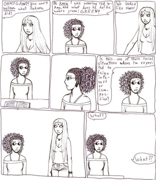 I felt the need to do a comic about this when I posted a picture of myself on Twitter with the bleached hair and my friends replied with "Make it go away. It's too weird when you're not purple haired!"My hair is purple again now and I feel so much better.