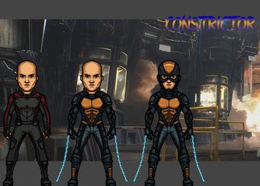 He was teleported by a gleam in a unknown building (the Titan Tower) where a red-skinned boy who looked like Nightcrawler (Kid Devil) attacked him but he managed to escape. He was called by Cottonmouth who asked him to help him and the his fellow Serpent Society teammates against some guys (Batman and his sidekicks) but Constrictor declined. He was locked in the Raft again because of a "nosy archer" (Green Arrow) but, together with Boomerang, was called for a project called Task Force X.- Frank Payne.