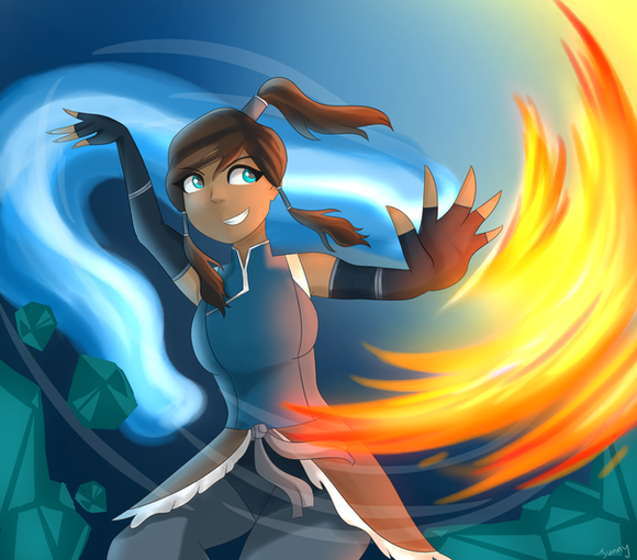 Let it be known that I have no idea how to draw bending. AT ALL. *Points to terrible excuse of flames, water, and rocks* Oh well.Korra (c) Nickelodeon