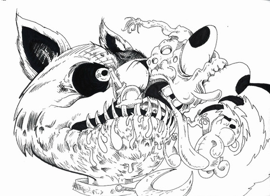Thanks! haha yes "sweet and sour" was a play on the saying "revenge is sweet" but mine is "sweet and sour" because even though heβs slamming Sin into the wall (sweet revenge) he getting choked and ripping his neck to do it (sour results that means consequences for his actions of revenge), so thatβs what it means...or he just wants some Chinese food! XD