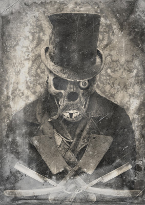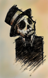 Heh I can imagine a seuss-like story called 'The Skeleton in the Hat',who visits 2 children alone in a house on a stormy night. He does look very fancy.