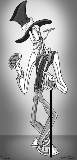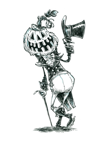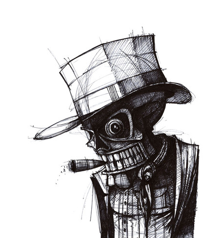 This is a pen drawing of a Skeleton Man. Hes fancy!Related content