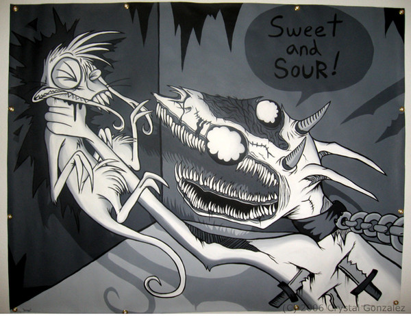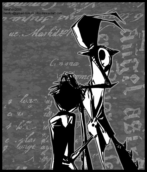 Very nice artwork. Reminds me of something out of "The Nightmare Before Christmas" or Johnny the Homicidal Maniac.