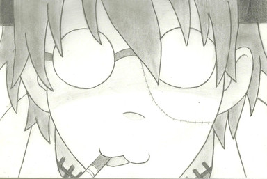 If you want proof you can look at the pics side by side and spot some of the differences that wouldn't happen if I was tracing. The hair on his right side (our left) gave me a lot of trouble and most of his bangs aren't quite where they should be. And just so I could put part of his screw into the pic, I cut of a piece of his ear. XD