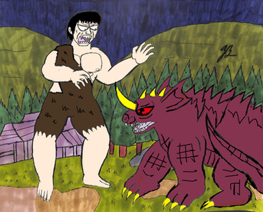 I still refused to believe that a giant kid Frankenstein was able to beat a giant fire breathing prehistoric lizard that was the size of a bear compared to him.