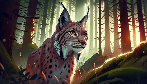#animal #animalportrait #animals #artdigital #bigcat #fantasy #fantasyart #fantasyillustration #illustration #paintingdigital #predator #wildcat #illustrationdigital #aiart #artworkdigital #patreon #aiartwork #aiartcommunity #forestlandscape #grass #lynx #morninglight #nature #wildlife #woods