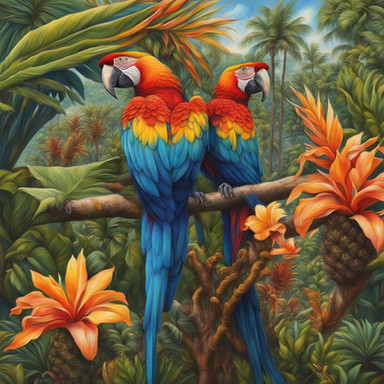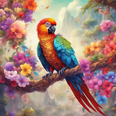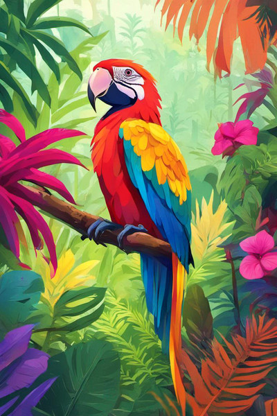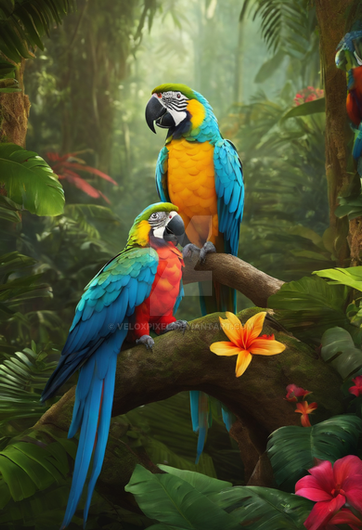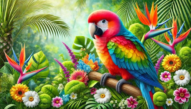 #animestyle #artdigital #artwork #blondehair #digitalart #digitalpainting #fantasy #fantasyart #illustration #aiart #adoptablesopen #animals #bookillustration #childrensbookillustration #colorful #flowers #jungle #macaw #paintingdigital #parrot #tropical #paintingillustration #patreon #patreonartist