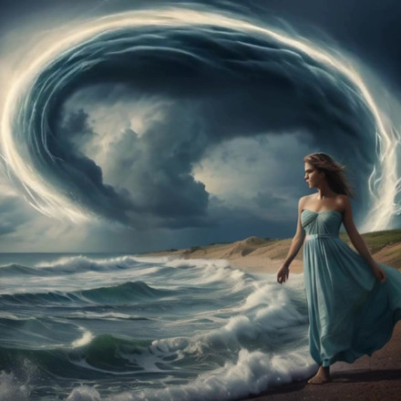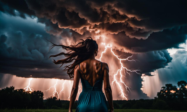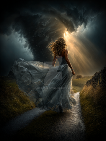 #artdigital #artwork #battle #battlefield #digitalart #digitalpainting #fantasy #fantasyart #illustration #portraitbeauty #aiart #aiartcomunity #greendress #landscape #landscapescenery #storm #stormyweather #woman #womanfemale