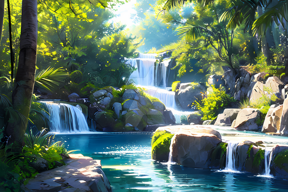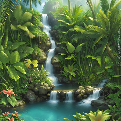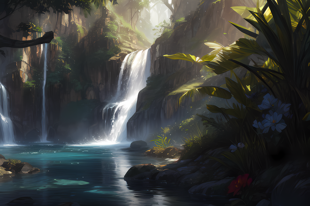 #artdigital #artwork #digitalart #digitalpainting #fantasy #fantasyart #illustration #aiart #patreon #aiartcomunity #exotic #fantasylandscape #jungle #landscape #landscapepainting #landscapescenery #palmtrees #sunlight #waterfall #waterfalllandscape