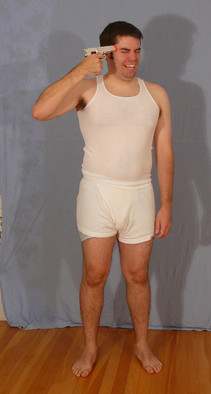 Much more photos here: [link]Photo of someone holding a gun to one of our model's head.