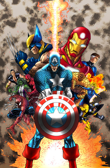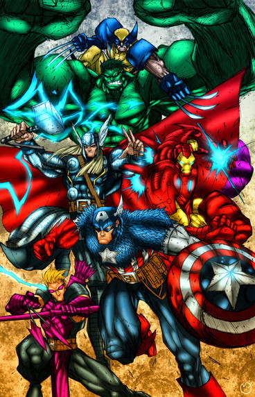 7 of MARVELS biggest characters all together! Captain America, the 1st Star Spangled Avenger and Super Soldier Living Legend of World War II! The Invincible Golden Armored Avenger Iron-Man! The Mighty Prince of Asgard Thunder God, Thor! The Incredible Hulk, the strongest one there is! All Founding Members of the Avengers: Earth's Mightiest Heroes! The fiercest X-MAN and New Avenger alive, Wolverine, he's the best there is at what he dose, but what he dose best, isn't very nice! The Amazing, Spectacular, Sensational, wall crawler, web head and web slinger himself, Spider-Man! A "Classic" period reserve Avenger, Founding and mainstay member of the New Avengers! The Silver Surfer, Sentinel of the Space ways, 1 of Stan Lee's favorite and most noble creations! A truly wonderful and MARVELOUS job here!