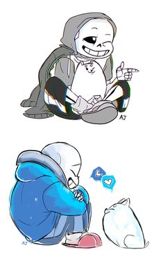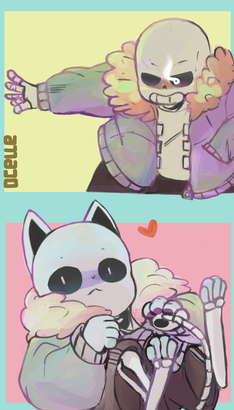 Here's a little something I just finished! I wanted to create a piece more related to my Undertale Comic that I'm currently working on.The idea behind this is that Papyrus is having some trouble getting along with Alphys's cat, and, well, Sans tries to... "talk things out."