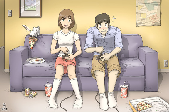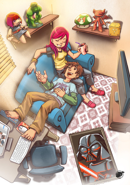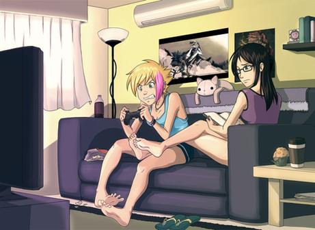 Hey would you mind if I put this on my Tumblr? I run a little page about women and girls in the gaming community and industry and would like to feature artwork featuring female gamers and game characters. Here's the link if you want to check it out; lasurite-star.tumblr.com/ Good work and Good Gaming!