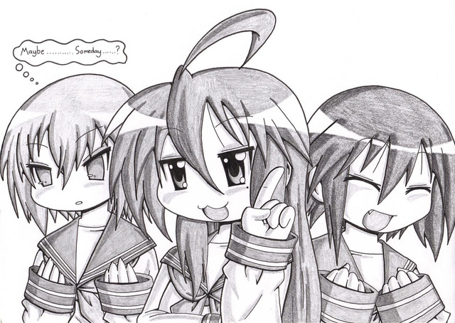 Lol, it's funny that I should come across this image. I just got into "Lucky Star" myself and what you wrote is the EXACT same thing I was thinking to myself! I hope it doesn't mess up my style either, but I have to say, this is KAWAII!! So adorable! I'm on my way to view more of your gallery!