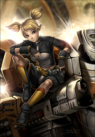 Beautifuly nice strong detail, especially on the device and her boots and armor/gear/clothes. Great job on her body as well!