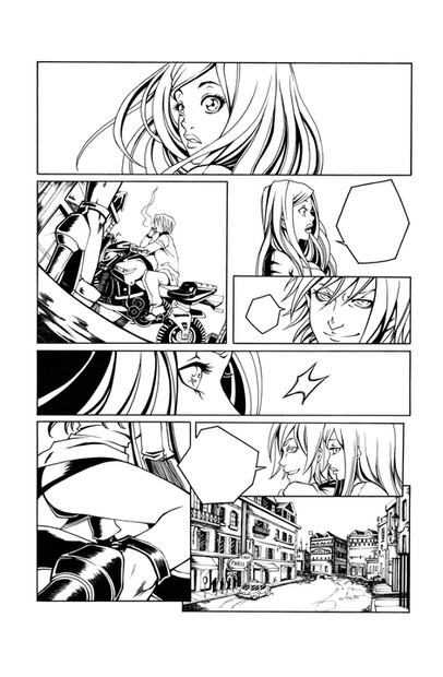 HMMM, This looks pretty professional. It's so clean and detailed. x_x My only complaint would be that one long panel sticking out in the middle. It's kind of distracting how it just sticks out like that. The bottom panels sticking out are fine, but that one panel just seems to through everything off for me. It's needed because this page doesn't have any other establishing shots but just with its odd shape and placement. I don't know how to read it. Other than that, this is absolutely fantastic work and probably far far better than what I work with. Keep it up! It's interesting and dynamic but it's not perfect. :I