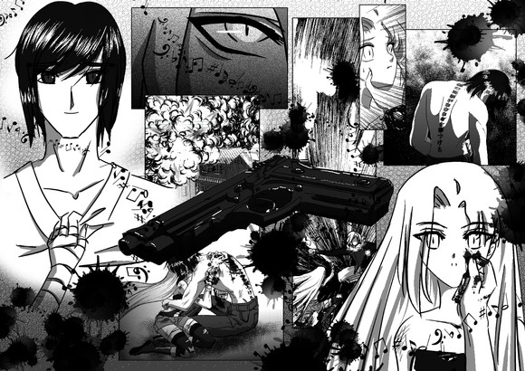 Yay for killing the bad guys! Haha, I love how both their hairs stick up like that and how the bad guys are blacked out, are they angels or demons?