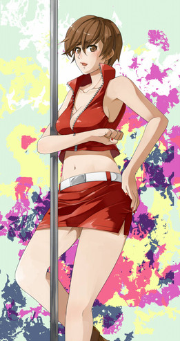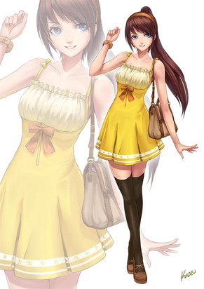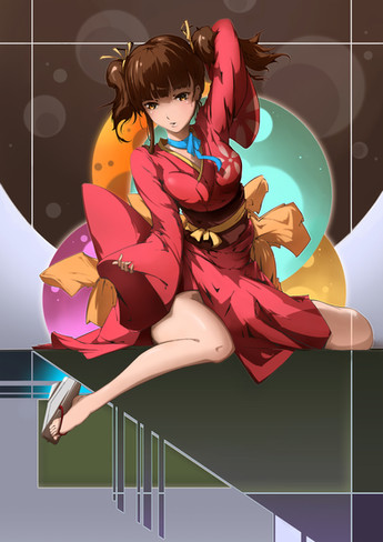 I like this piece, the angle is interesting and it has a lot of dynamic movement. The only thing that bothers me is the proportions of her chest... I know it's common to exaggerate this feature in Manga and Anime, but this seems a bit extreme, mainly because it's distracting from the rest of the image. The subject appears young and vivacious, and while her eyes seem to hold aged secrets, the figure is inconsistent with the feel of innocence present in the rest of the image. *shrugs* Just my suggestion--so far the only constructive criticism I've had for one of your pieces.