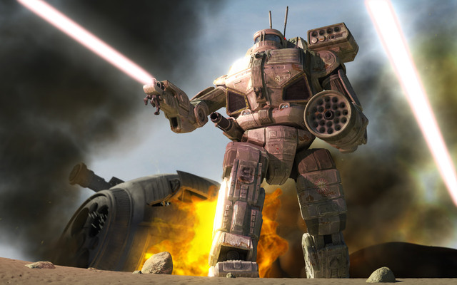 This is a picture of three Titans laying down a barrage upon a Nod base. This picture was on a really awesome poster for Tiberian Sun. I have not been able to find this poster, but would absolutely cut off my right arm to hang it from my wall.-2009 UPDATE-