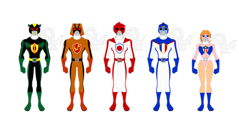 from battle fever j the 3th series of the super sentai series also L to R Masao Den,Kyousuke Shida,Shirou Akebono,Kensaku Shiraishi and Diane Martin also too credits to Stuart1001 MicroManED Omniferis n8navarroRelated content