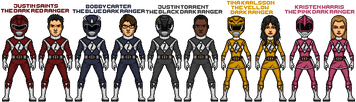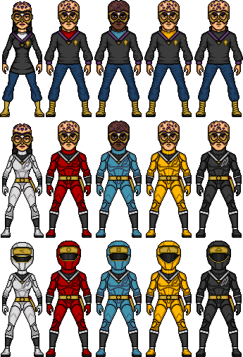this is they tv show costume i will try to make the comic costume also credits to n8navarro and power rangers microheroes wiki also too later i will post the power rangershis names are in order of the image L to R Justin,Bobby,Zane,Tina and Kristen