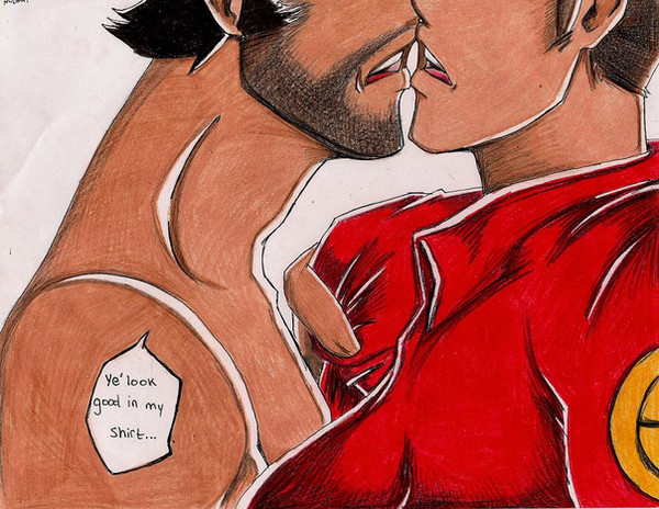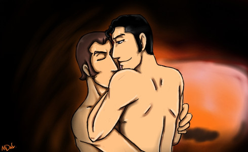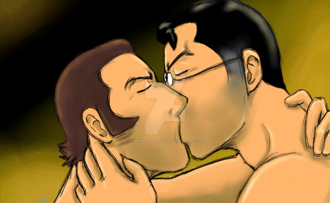 There is just... everything about this picture that I love. I love yaoi. I love hot tension between the hero and villian. I love these two especially. I really love sexy pain, and I love seeing my heroes a little bloodied. Just... so much win, I can't believe it.