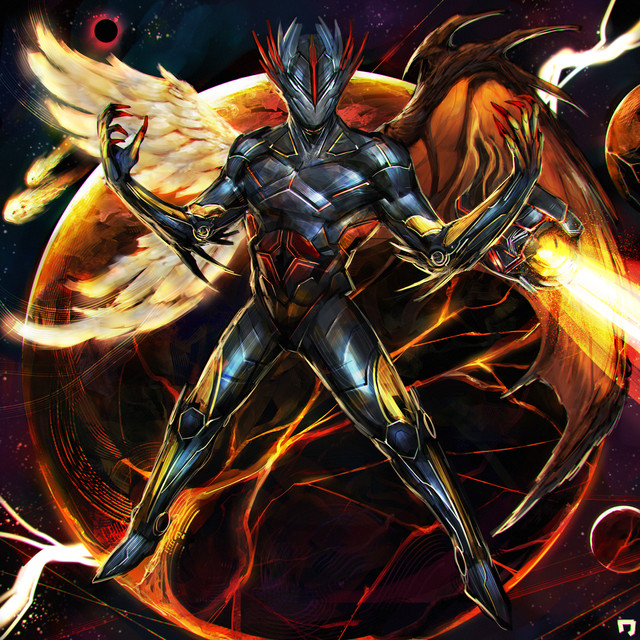 This is Commander Hellfire Hero, the epitome of Hellfire Hero LLC Portrayed in this composition he is lodged in a deep fighting stance, showcasing himself as the protector for all of Earth and all creation as the Omega Holy Dragon. however, must understand that the title comes with a price with the demons he bears. Please thank One Dalation again for his amazing work and I wanted to show this off proudly because he is the HEART of the Hellfire Hero Legacy and I believe that he looks absolutely undeniable, indestructible, and unstoppable. He has a wing cannon capable of firing holy fire and one angelic wing furthermore is equipped with state of the art armor enhancing his agility and stamina. I sincerely hope you enjoy this masterpiece for what its worth! Thank you!