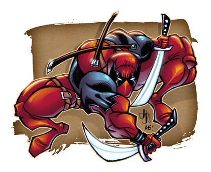 As for feeling similar? I did a search on deadpool in DA AFTER.... I did this one. I found one that looks almost identicle in pose. I was soooo freaked out at how close the poses were when I never even seen this image before.