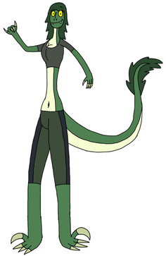 She is named after Lacerta, the Lizard constellation, with its symbol on her shirt.