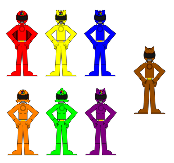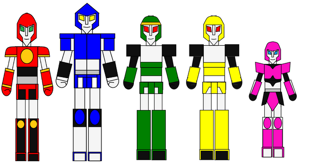 An idea I had if the main cast from the indie game Night in the Woods became Power Rangers.From left to right: Germ, Bea, Mae, Gregg, Angus.