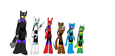 The Ranger forms of the Psychosaharans from Desert Squadron: Saharanger Episode 26. Created by D-Light to be the ultamate oppponents, their mission is to destroy the Saharangers. They also have the elemental powers of their original counterparts.From left to right: