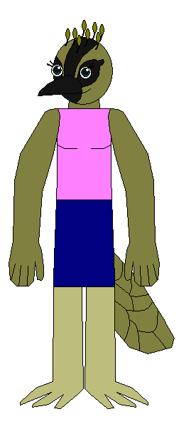 A kingfisher girl who first appears in Episode 24 of Desert Squadron: Saharanger. She is an environmentalist who lives in the forest nearby Bangle City. She often spends time by herself but will occasionally hang out with her friends.Trivia: Yumi is based off of Yomika, the protagonist of the Yume Nikki fangame Yume Graffiti. Her being a kingfisher is based off her Kingfisher Effect.