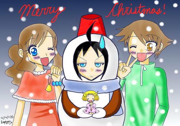 Hahahahaha merry Christmas!! I hope you had a lovely day! As for me, I'm alright but I have had too many adult chocolates and so my hand was kinda shaky cuz I kept giggling and my vision was worse than it usually is lmao so here it is! A very quick drawing hahahaha sorry for bad lines!I am sorry Shinji, I'm sorry for getting drunk on chocolate for the picture, I love you but I also love Alba, she is my best friend after all!! Haha he looks so annoyed, but when doesn't he? He is such a cutie aawww -pinch his cheek-