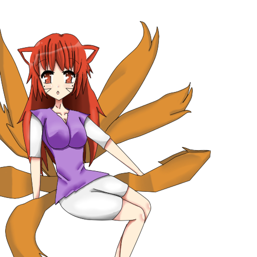 Woah! She really looks cute. I love her tail, all nine of them .