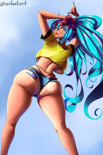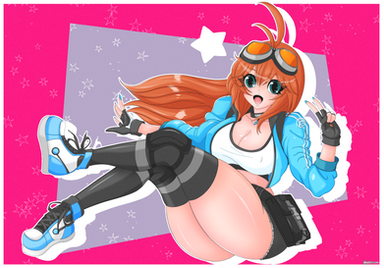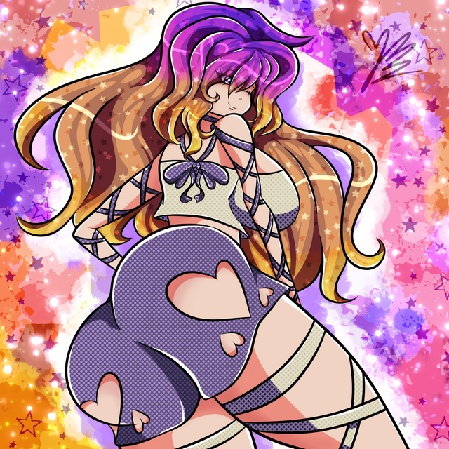 #fanart #digitalart #angelica #blonde #blue #blush #croptop #glove #latex #longhair #rpg #skirt #straps #videogame #bicolorhair #browndust2