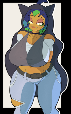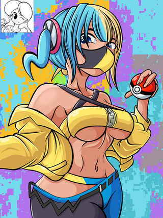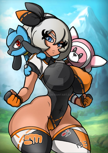 #beautymark #carmine #eyebrows #fanart #mask #pokemon #thickeyebrows #thighs #trainer #yelloweyes #blackandredhair #thick #morpeko