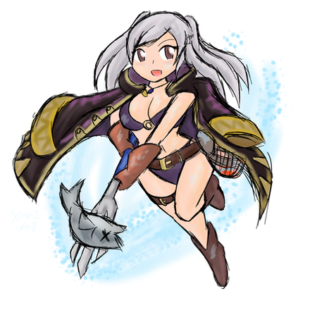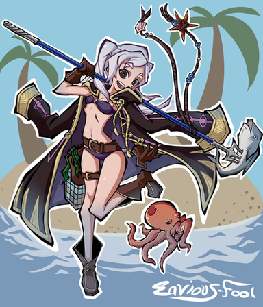 #belts #boots #catears #catgirl #fireemblem #fish #gloves #leather #nekomimi #robe #rope #spear #swimsuit #twintails #wink #femalerobin #tsuinte