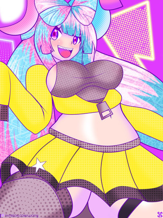 #anime #fanart #originalcharacter #pokemon #bamboo #bell #blonde #gijinka #gloves #leotard #thighs #twintails #wraps #chingling #tsuinte