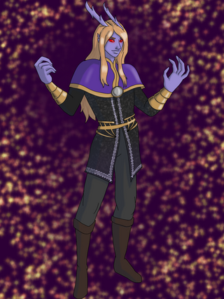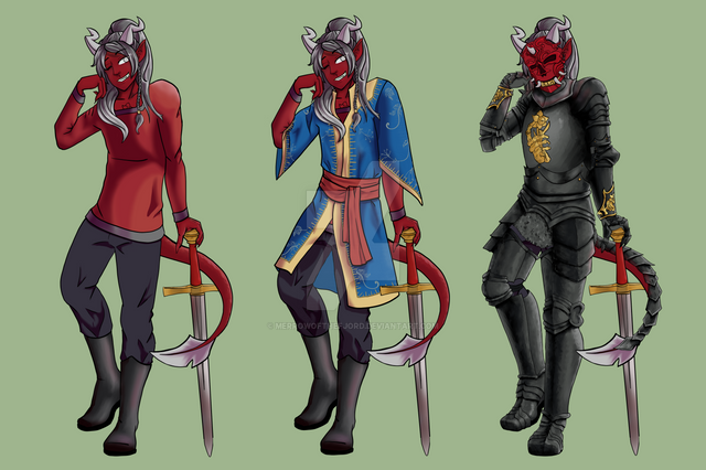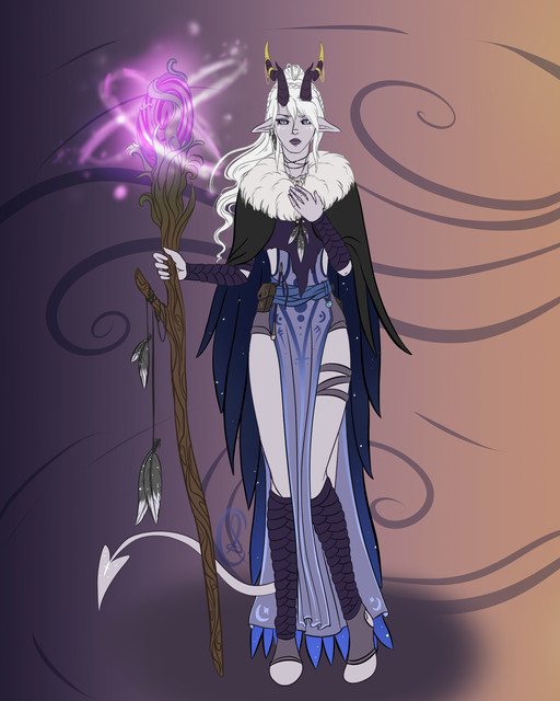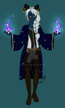 #blueskin #boots #chains #coat #commission #dndcharacter #gold #horns #whitehair
