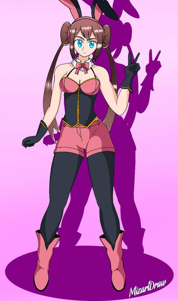 #boots #bunnygirl #commission #cuffs #ears #flannery #pokemon #redhair #tights #trainer #cinderace