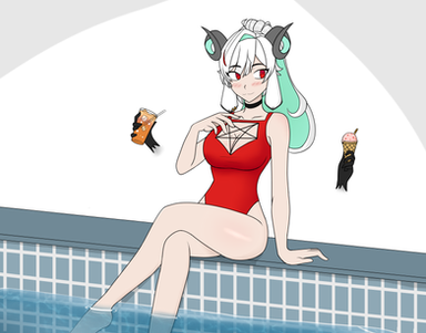 #horns #pool #succubus #whitehair #ahoge #thralls #slingkini #vtuber #viperlilium